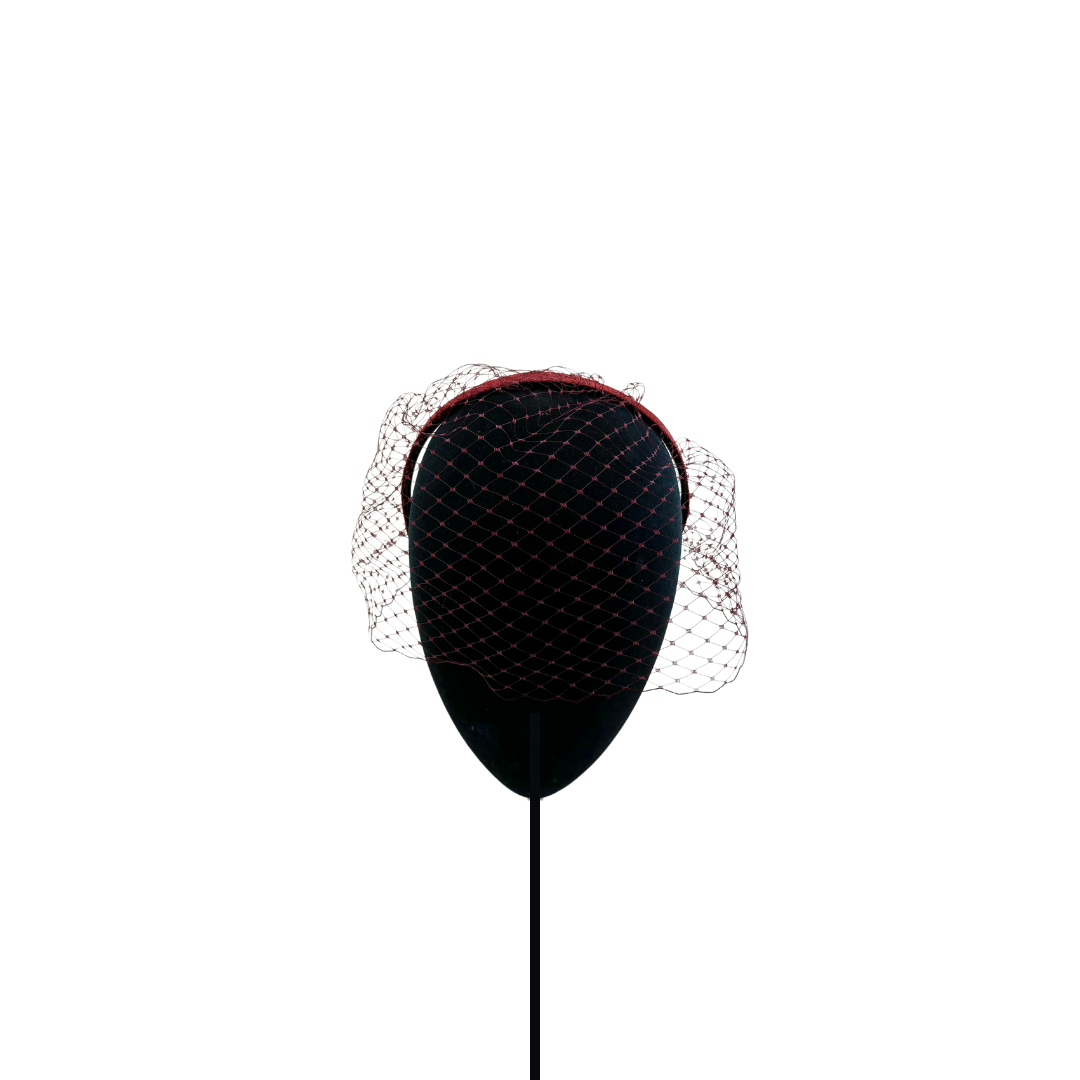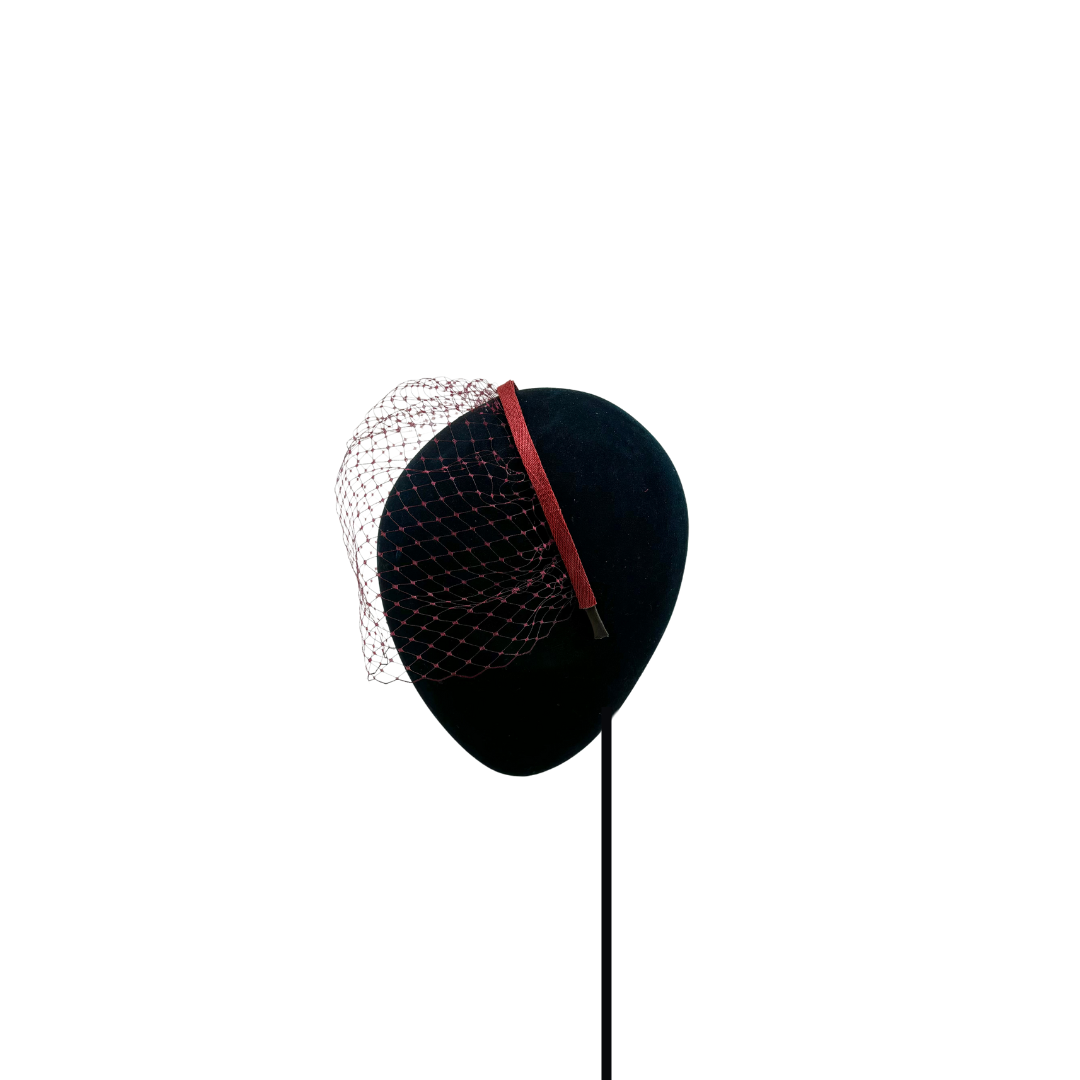 Velo rojo montado en diadema fina.