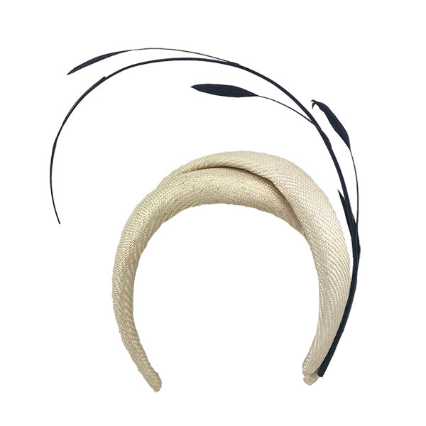 Doble estructura de parasisal natural con raqui negro y plumas al tono