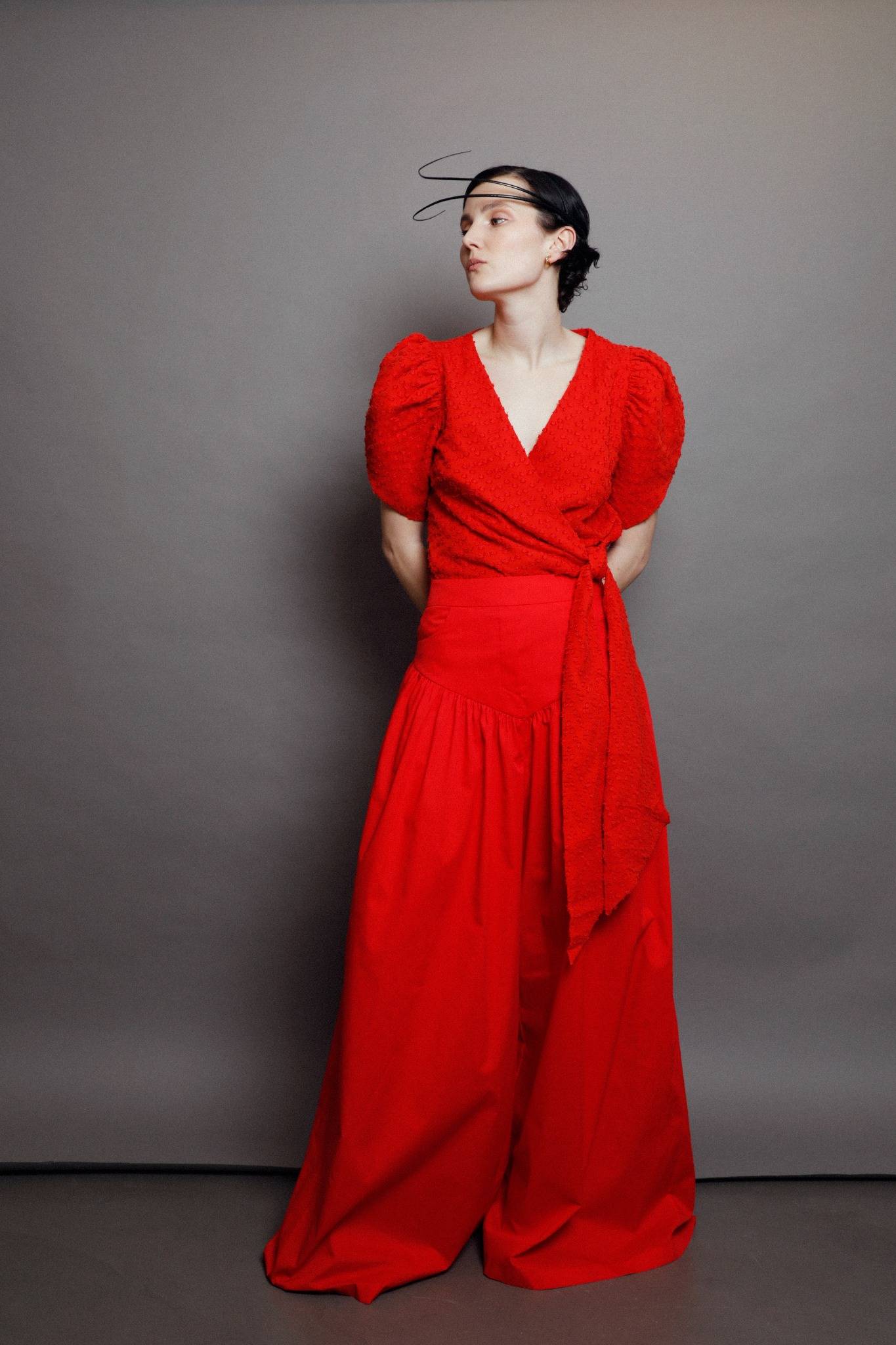 Pantalón palazzo con talle alto y con bolsillos laterales.
