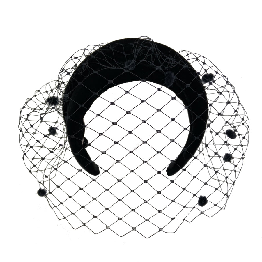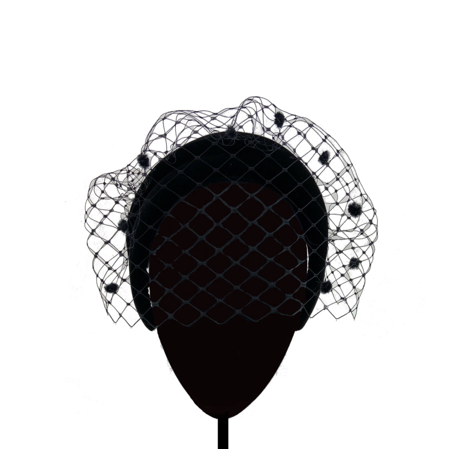 Doble estructura forrada en terciopelo negro con velo al tono.