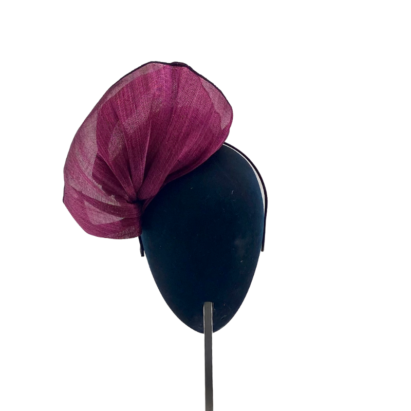 Estructura abanico de rafia y algodón fucsia en forma de casquete