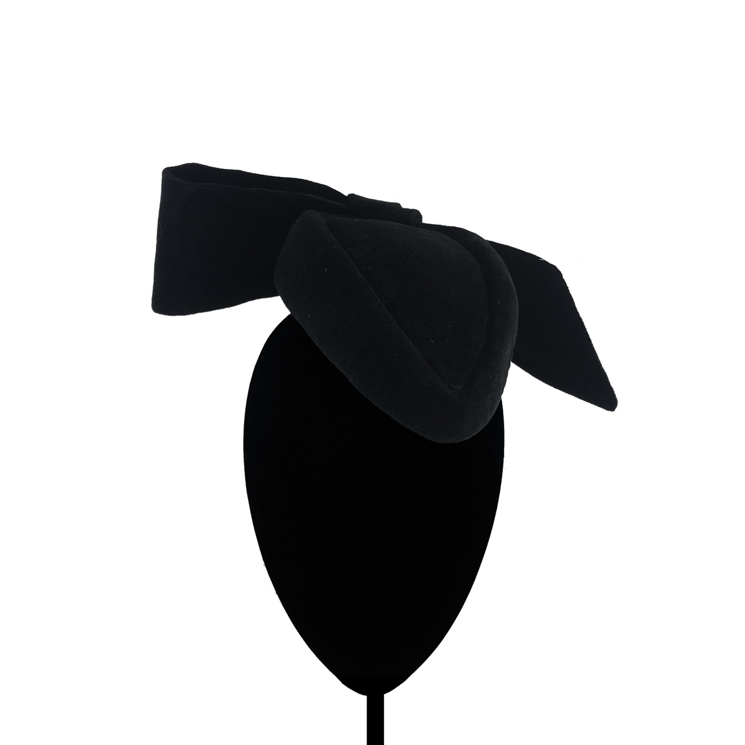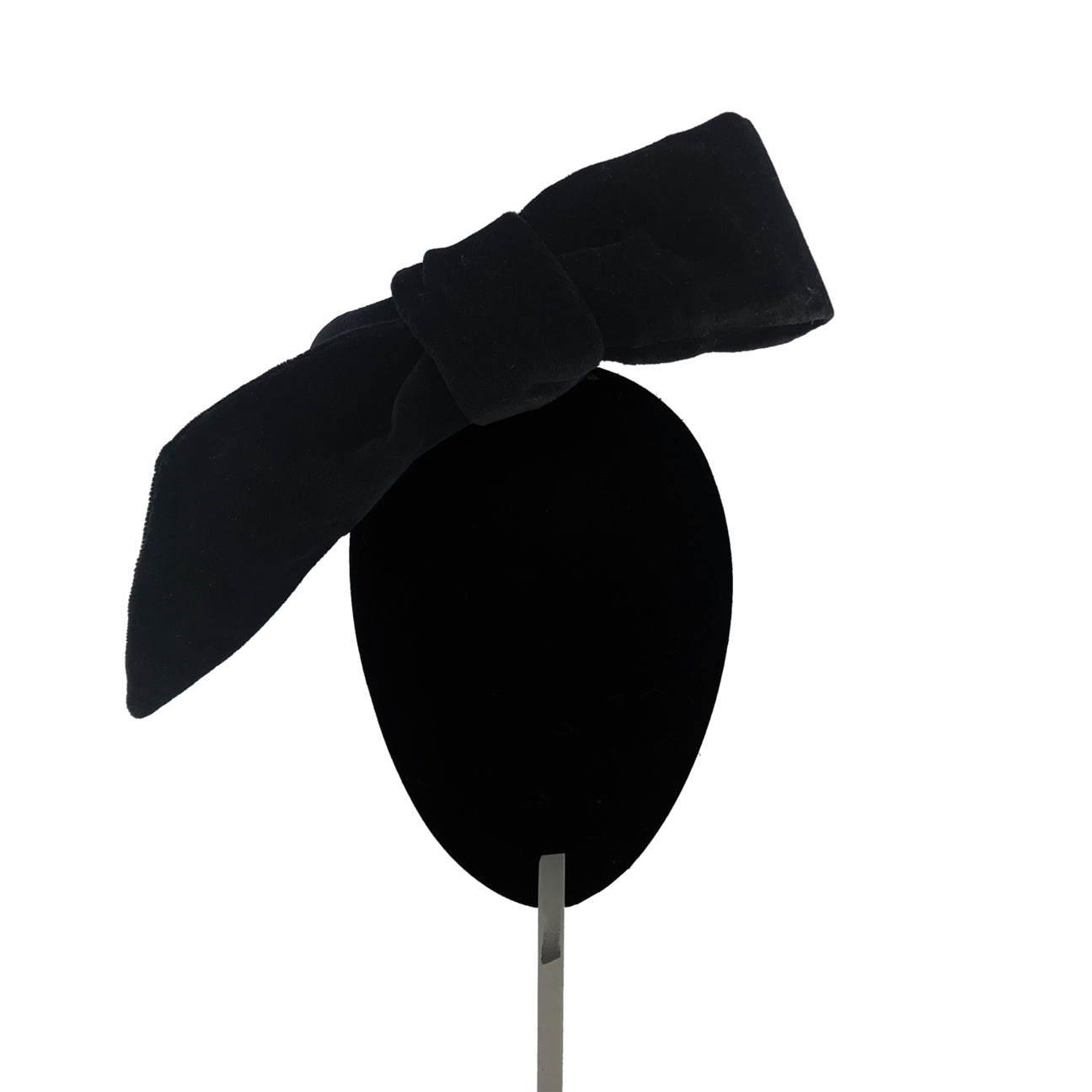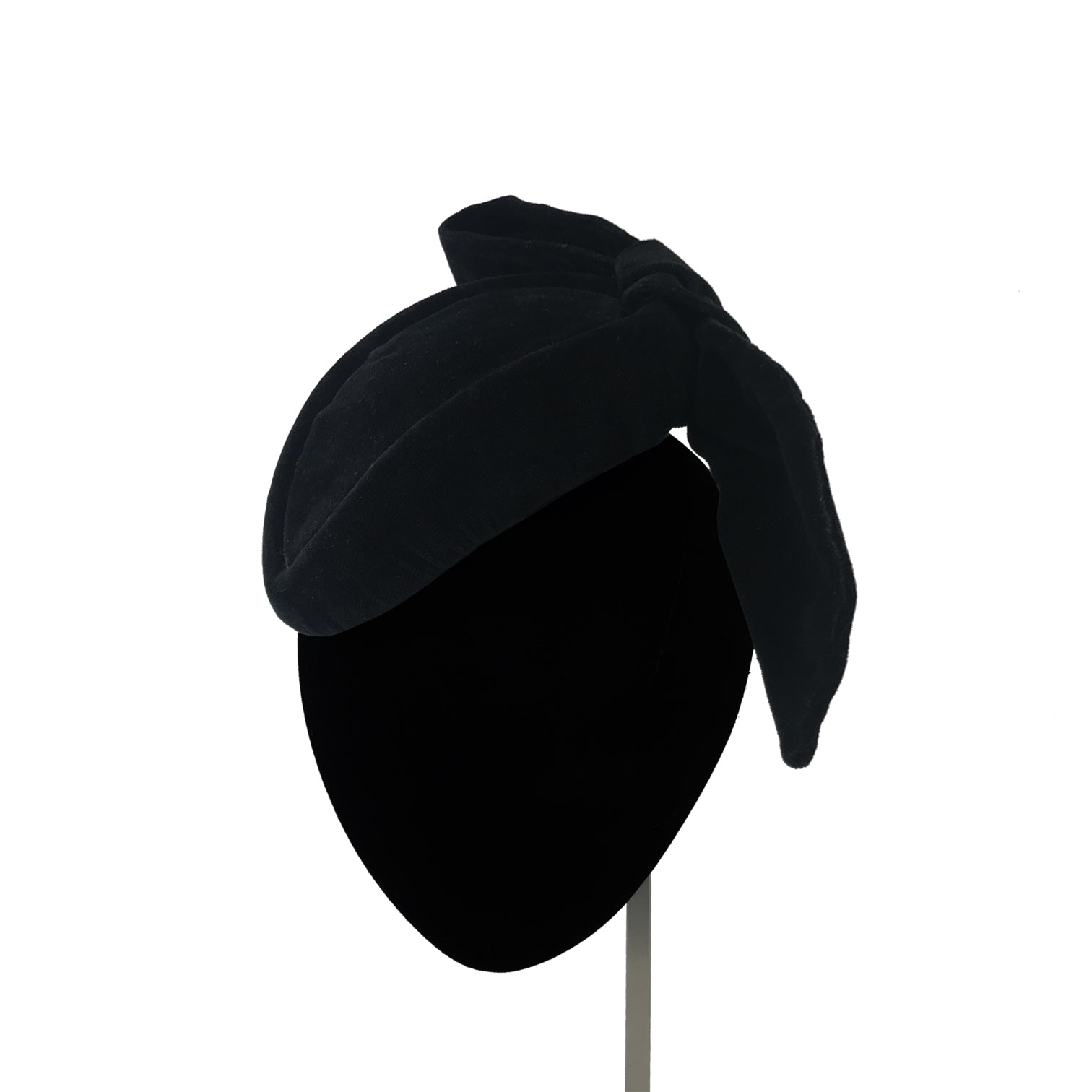 Casquete azafata forrado en terciopelo negro con lazada atrás.