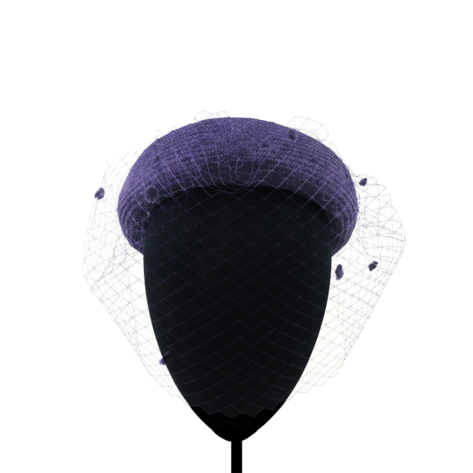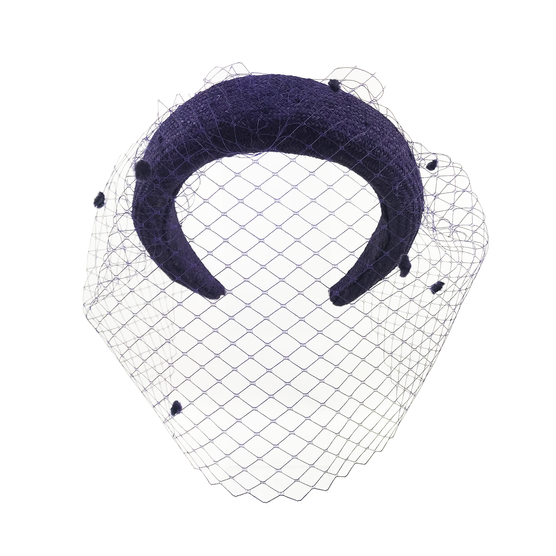 Diadema de parasisal morada con velo de plumeti al tono.