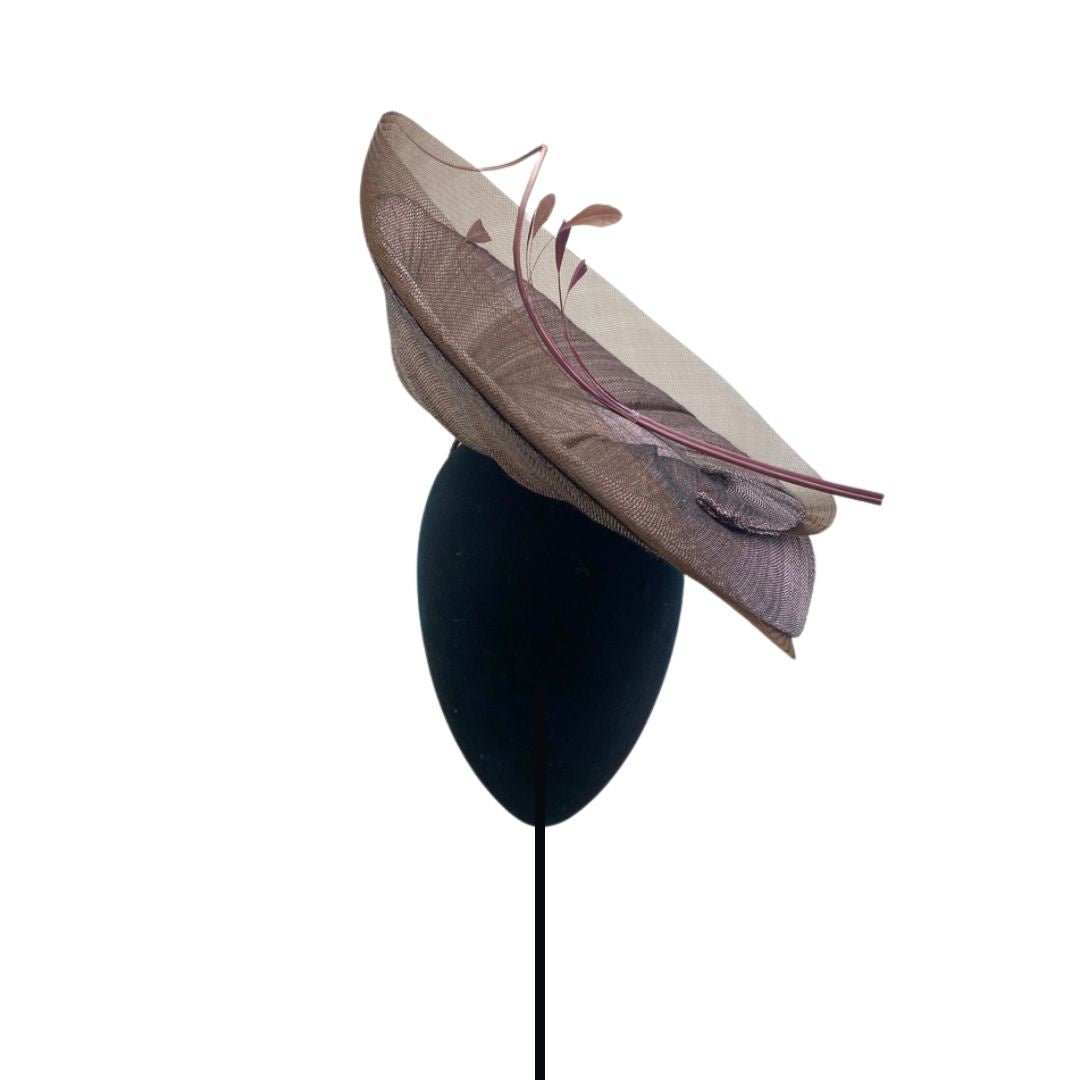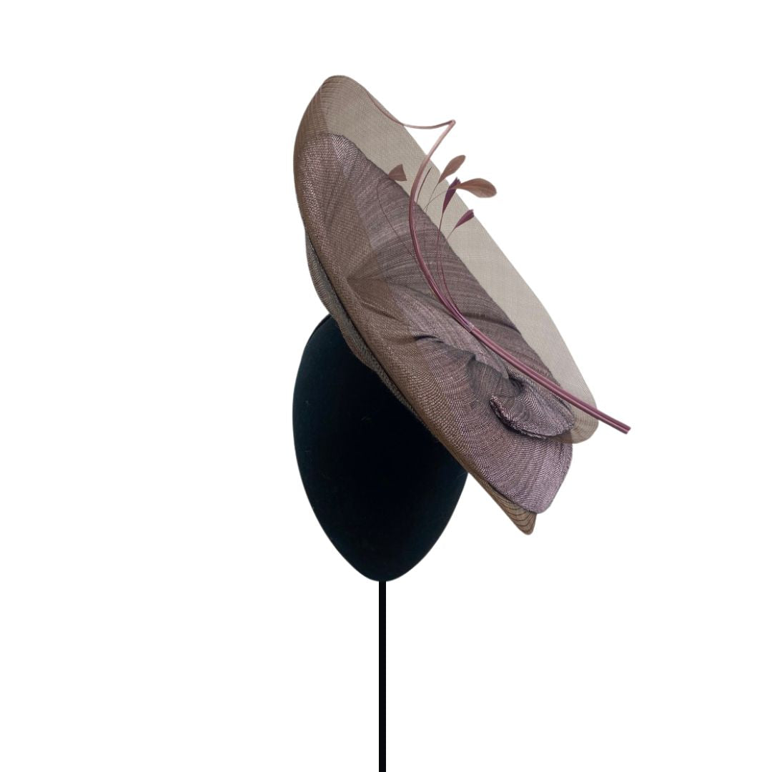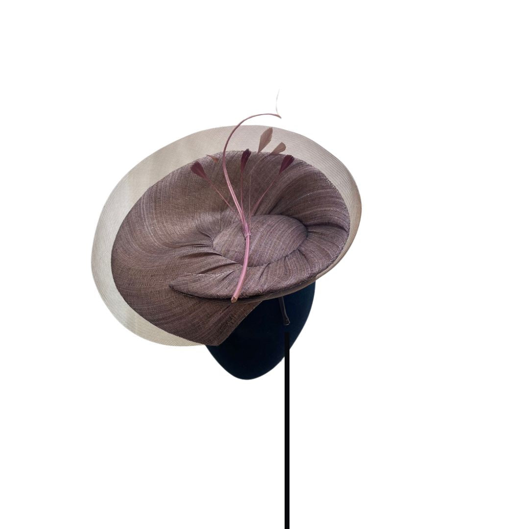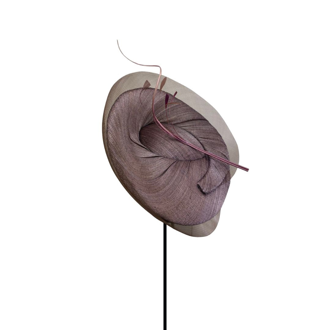 Estructura ondulada forrada de rafia de algodón rosa viejo con bies de crin gris y pluma rosa viejo