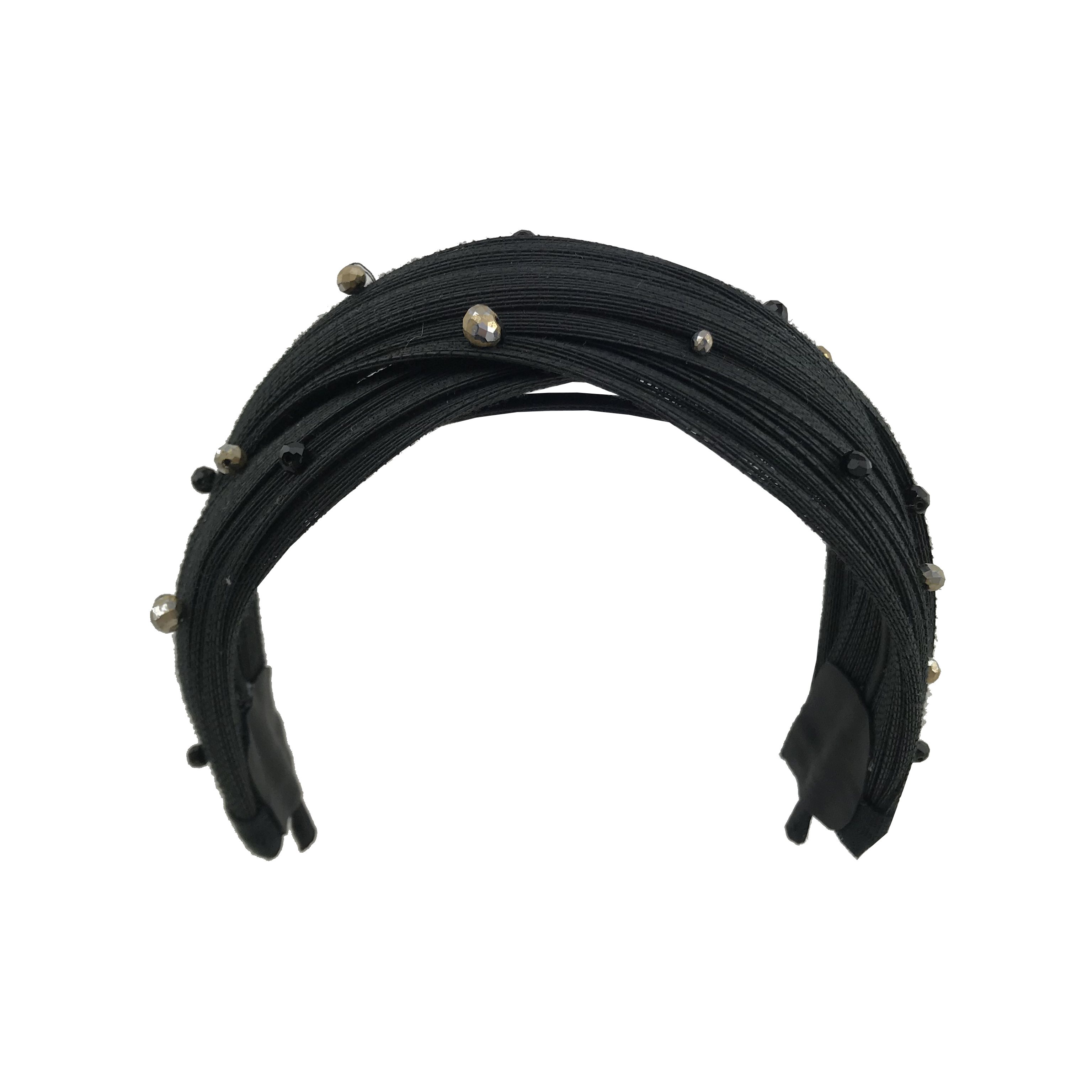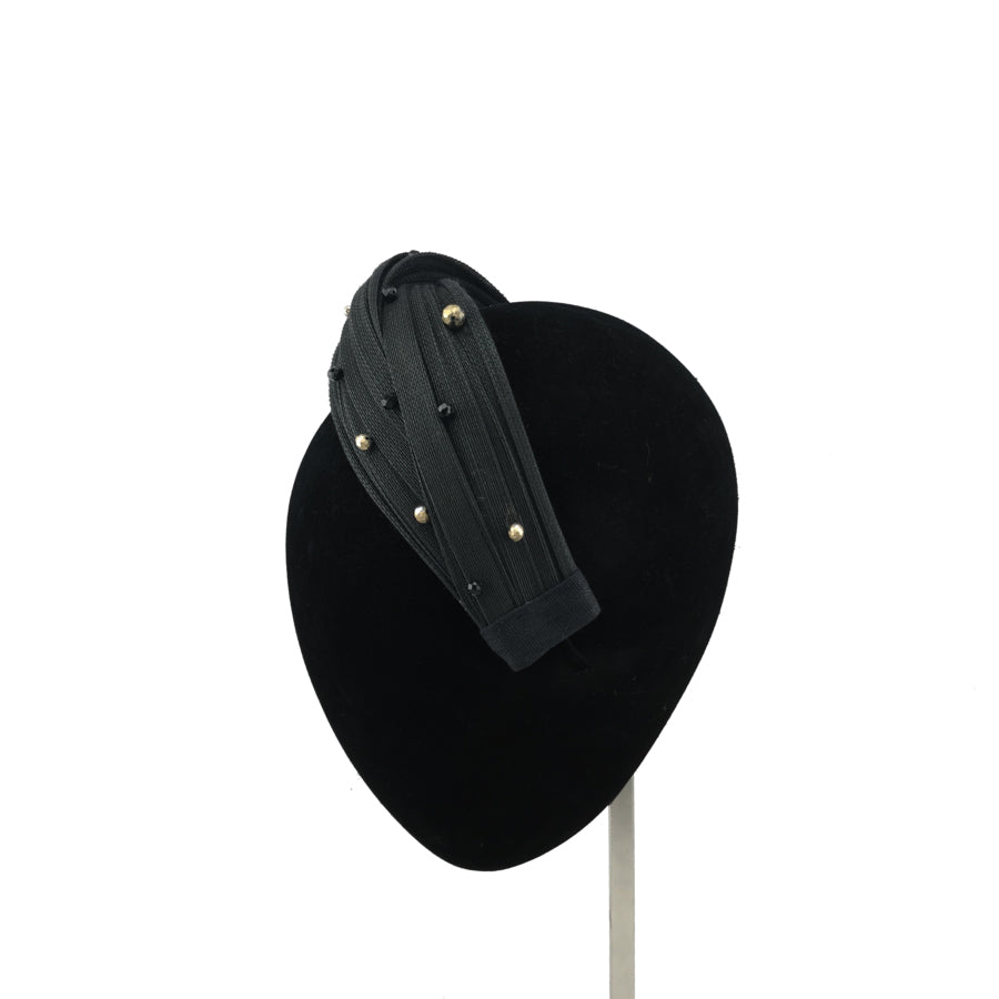Diadema turbante negra con apliques negros y dorados