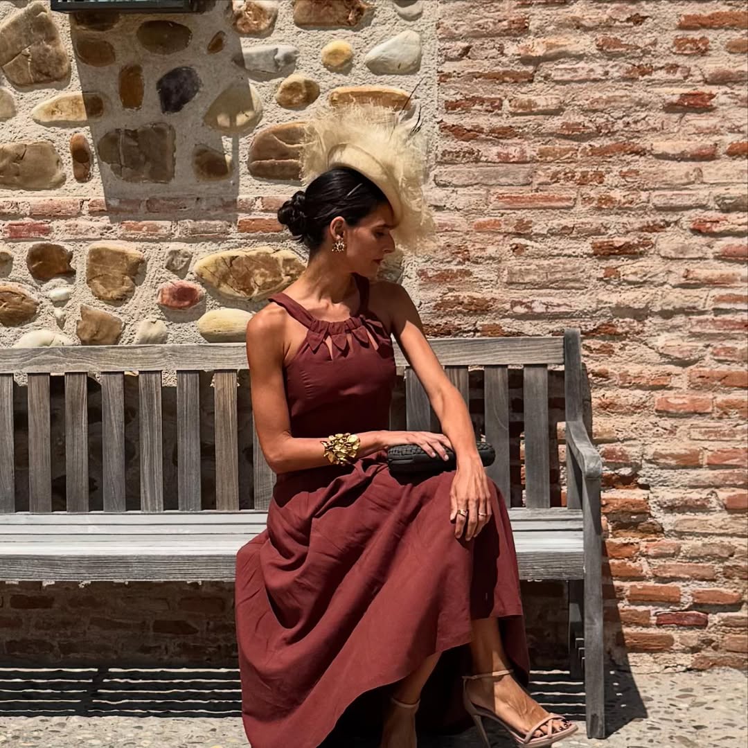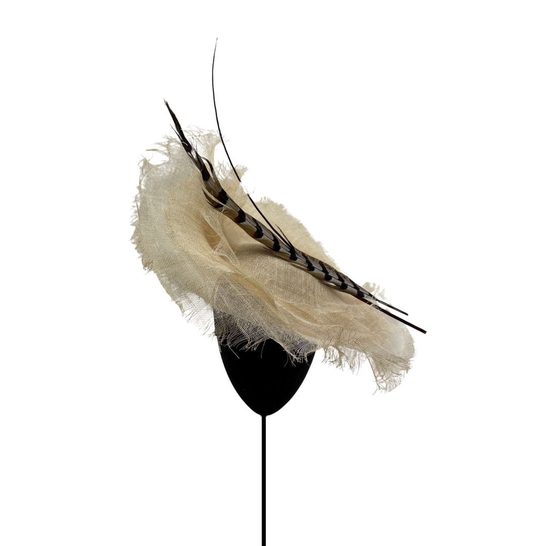 Dulcinea de sinamay deshilachado natural con faisan y raqui marrones