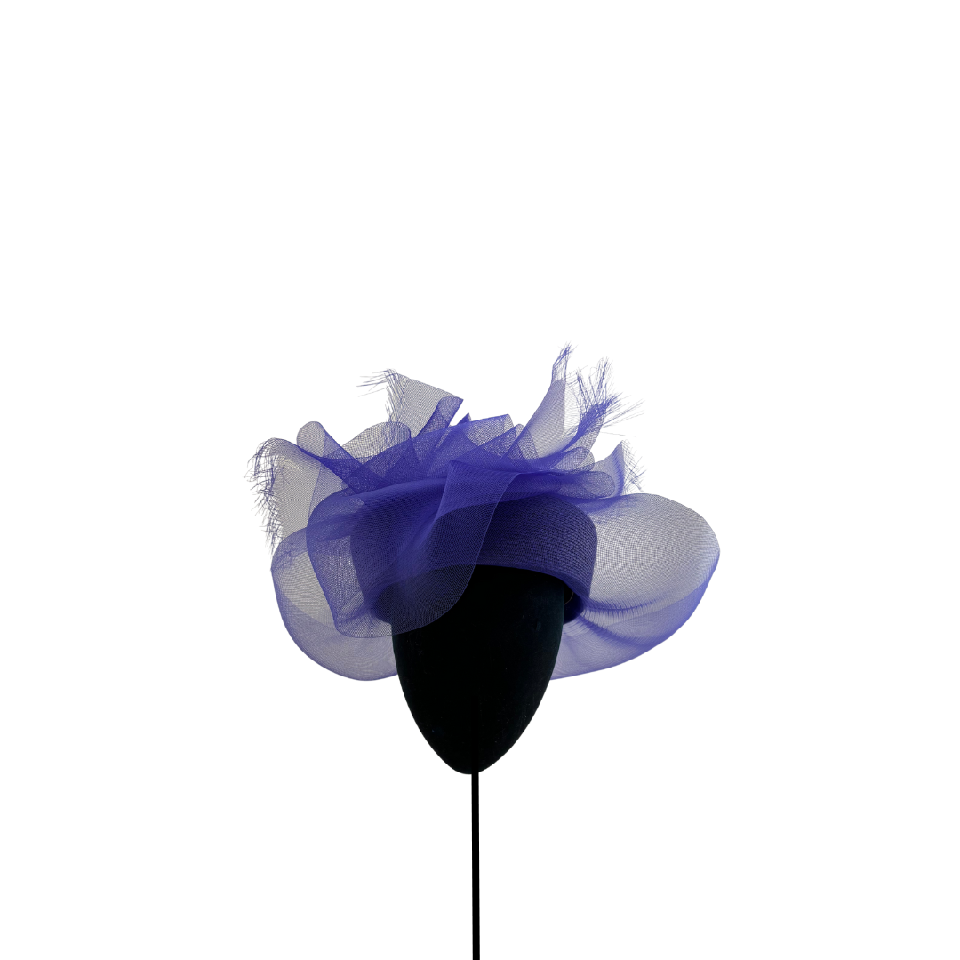 Casquete morado con lazada de crin al tono.