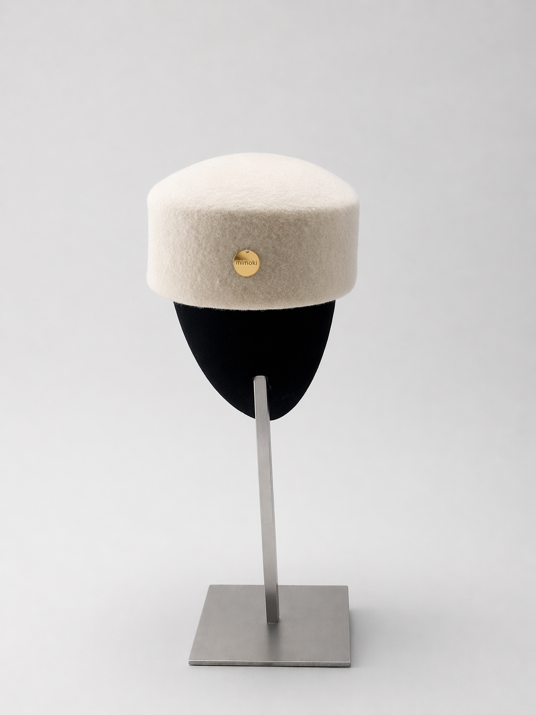 Casqute de fieltro de lana con forma cilindrica en color blanco