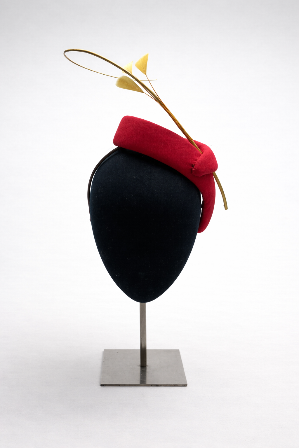 Estructura curvada forrada de crepe rojo con raqui y antenitas amarillas.