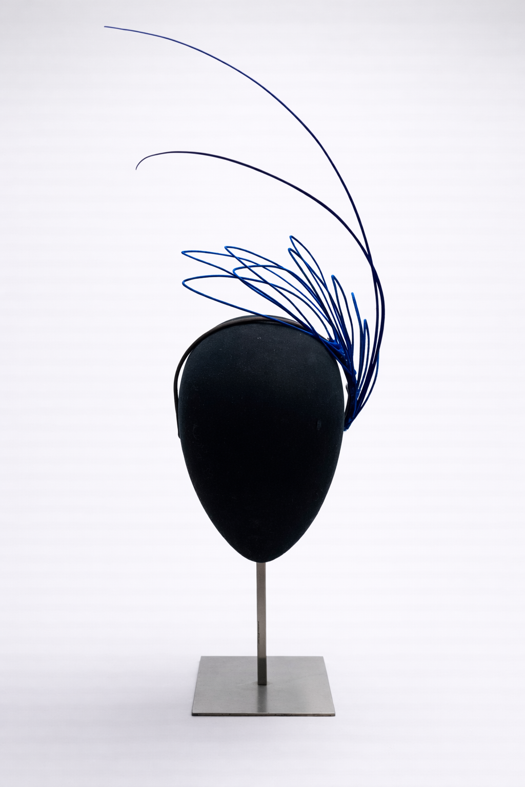 Hojas de alambre al lateral forradas de hilo de seda en color azul y raquis al tono