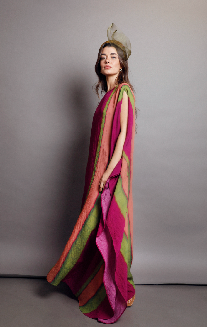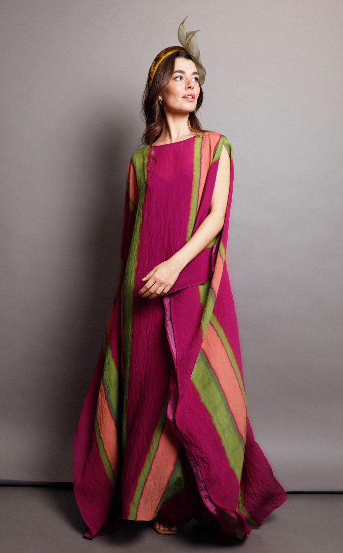 Vestido túnica de rayas con manga ajustable y escote barco.