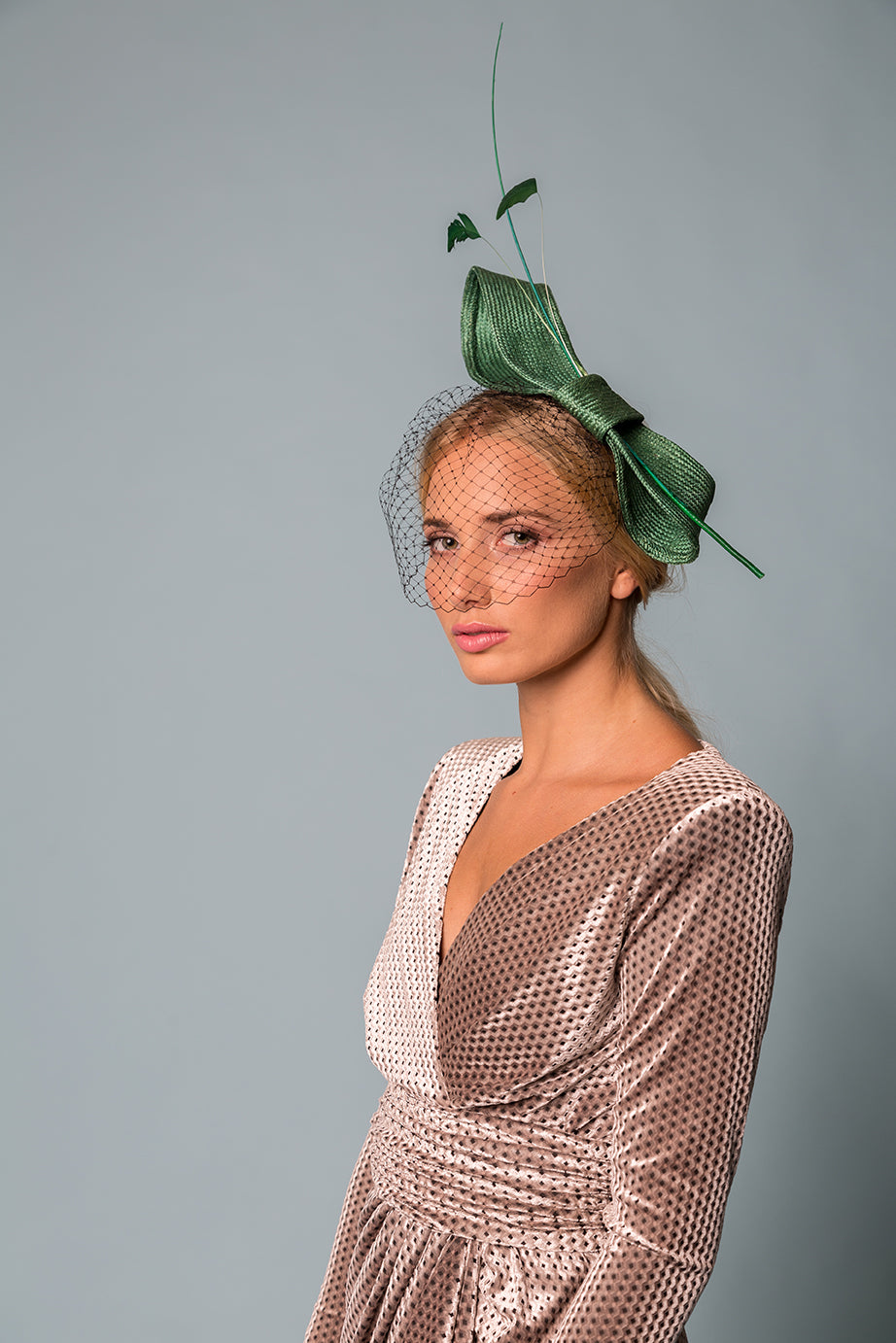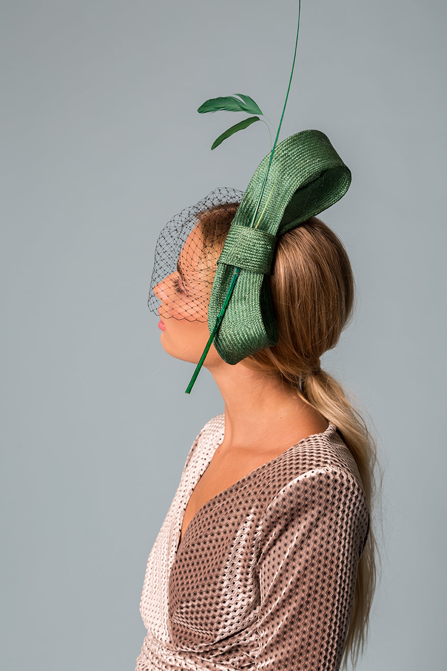Lazada en parasisal verde con pluma y raqui al tono mas velo negro