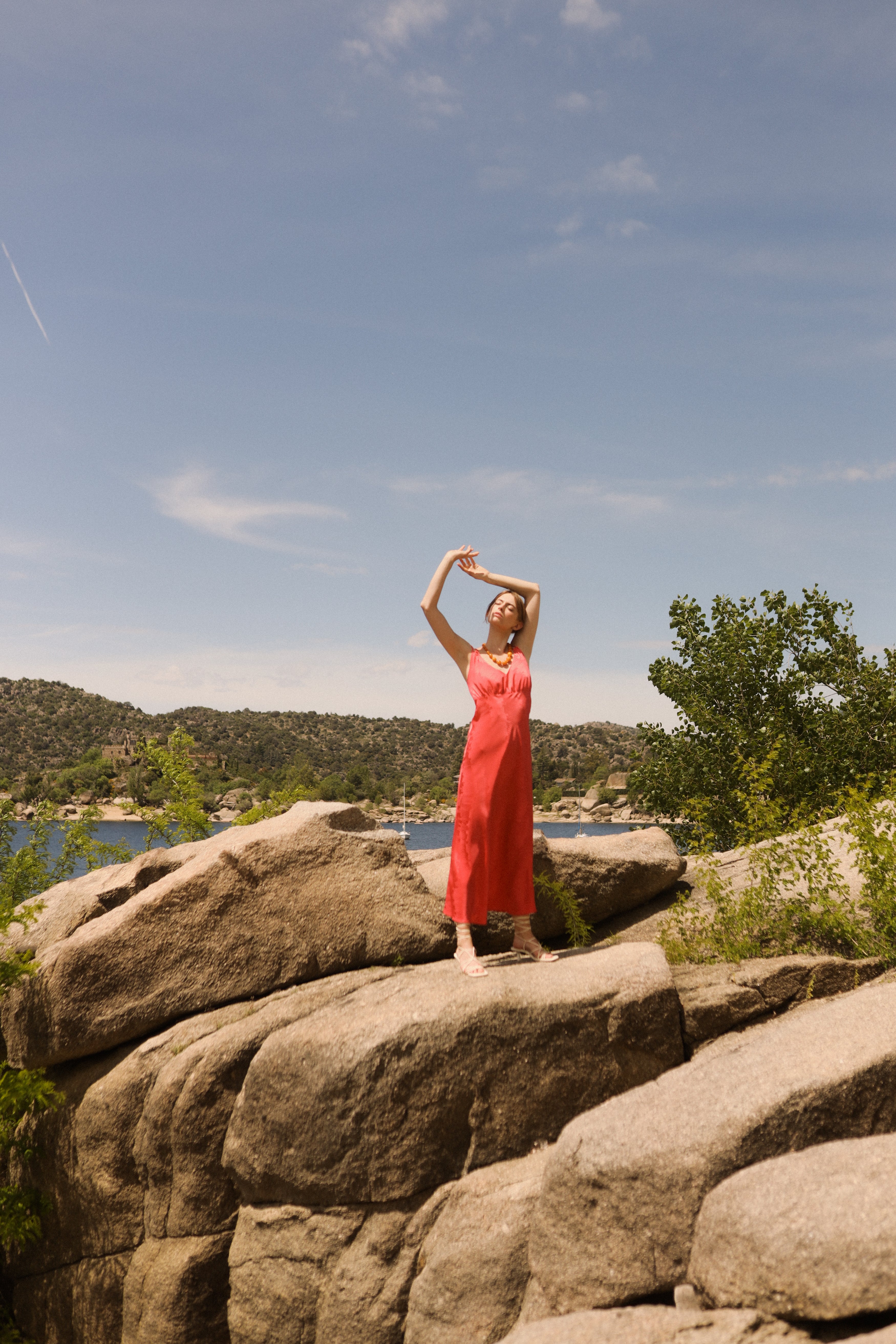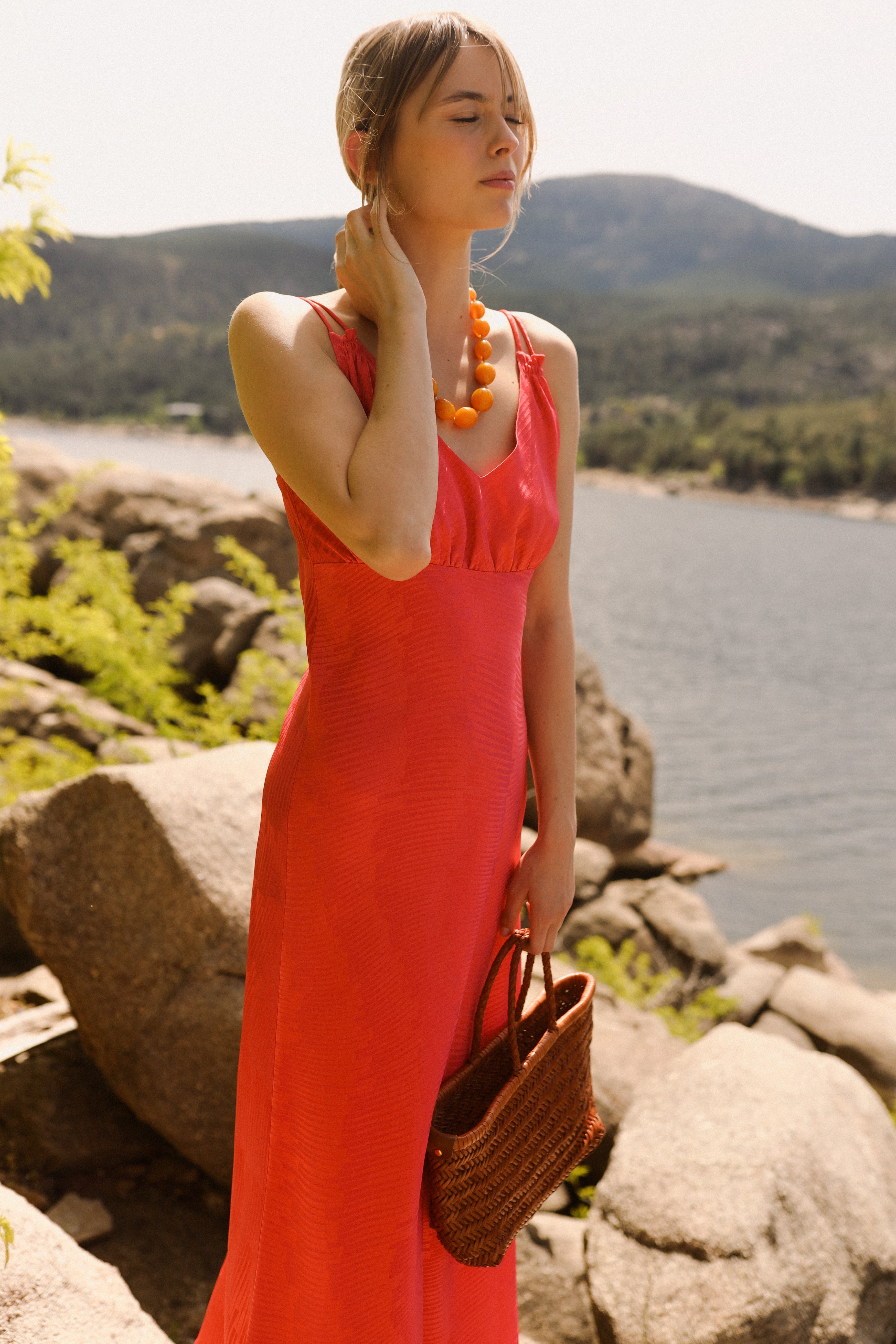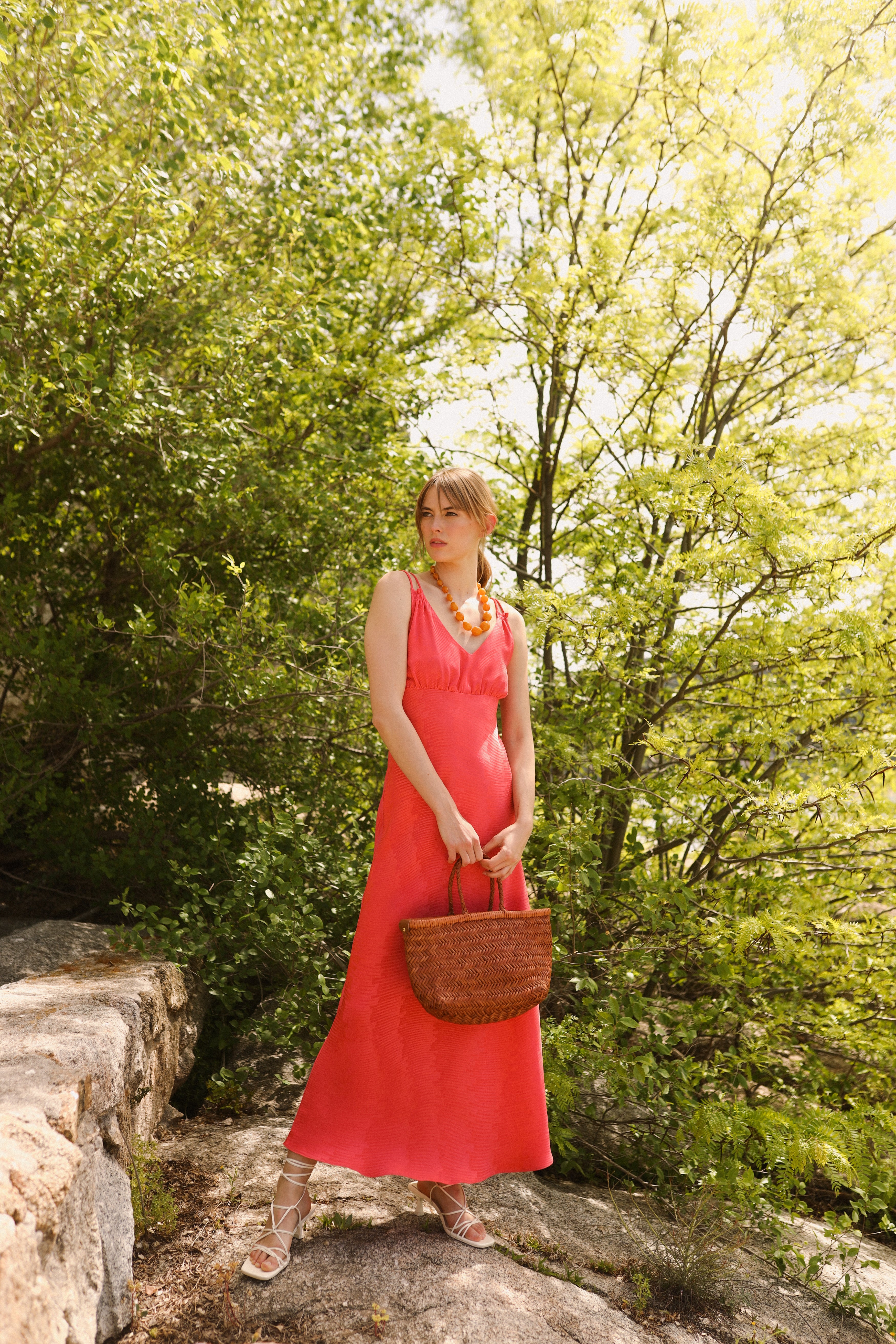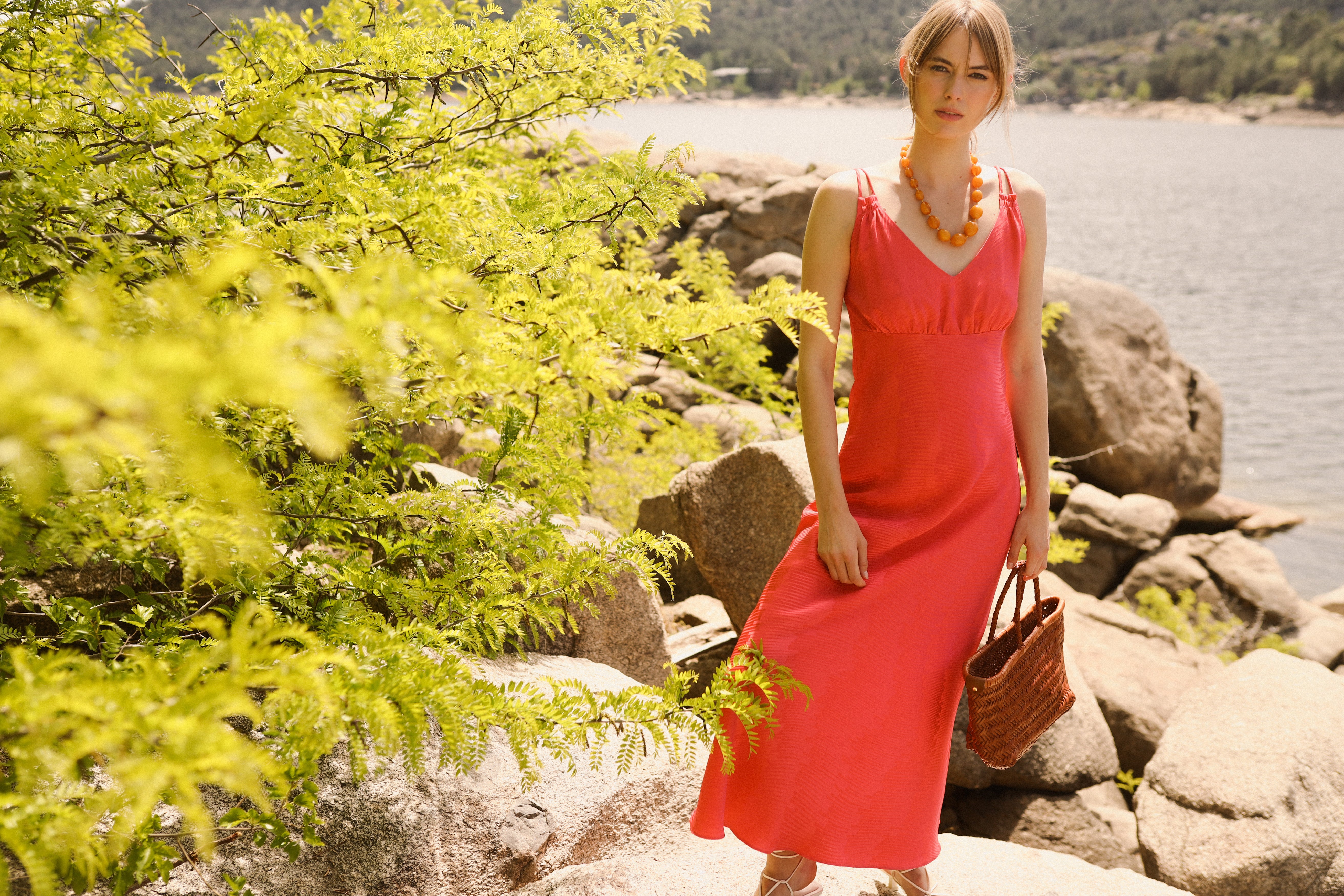Vestido midi con doble tirante y escote en V.
